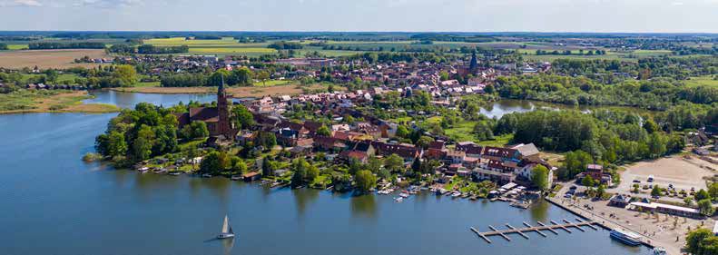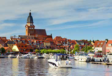Traumhafte Landschaft führt durch die Mecklenburgische Seenplatte, das Land der tausend Gewässer. Die Aufmerksamkeit gilt dem Müritz See, dem größten See des Landes. Es grüßt das Städtchen Röben, der bunte Hafen am kleinen Meer. Die geschützte Lage mit Fachwerkhäuschen vermittelt das Gefühl von Geborgenheit. Die Scheune Bollewick, die größte Feldsteinscheune Deutschlands, beherbergt Werkstätten des traditionellen Handwerks und lädt zum Bummeln, Probieren und Einkaufen ein. Vorbei an Flora und Fauna geht es mit dem Schiff in ein Naturerlebnis der Ruhe und Entspannung. Im Anschluss entführt Sie die Tschu-Tschu-Bahn auf eine Stadtrundfahrt durch die Gässchen von Waren.